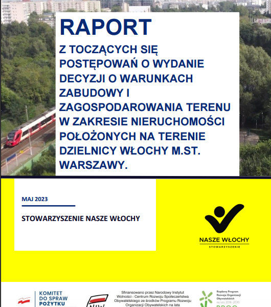 Raport z toczących się postępowań o wydanie decyzji o warunkach zabudowy i zagospodarowania terenu w zakresie nieruchomości położonych na terenie dzielnicy Włochy m.st. Warszawy. Zakres czasowy – od września do października 2023 r. Link do PDF: Raport WZ – cz. III – pobierz „Sfinansowano przez Narodowy Instytut Wolności – Centrum Rozwoju Społeczeństwa Obywatelskiego ze środków Programu Rozwoju
